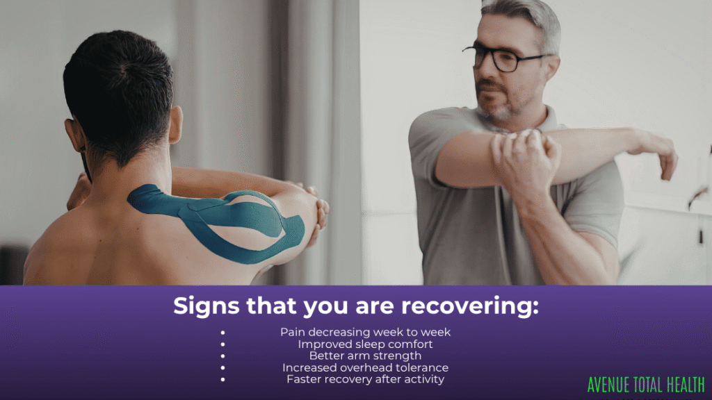 With proper rehab, many people notice improvement within the first 2–3 weeks.